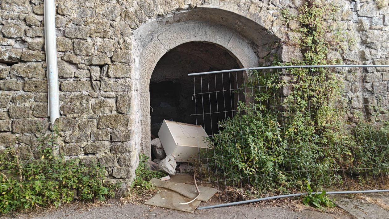 Lo scempio coinvolge anche quelli che dovevano essere i locali di accesso all’ascensore realizzato anni e anni fa mediante il progetto Plus. Un collegamento che da Valle Faul doveva mettere le persone in condizione di raggiungere non solo piazza del Duomo (dove l’ascensore effettivamente si ferma), ma anche nel parcheggio situato il Largo Cavalieri Costantiniani (bloccato da anni per un crollo e mai recuperato nonostante la carenza di posti auto in centro) e a Via San Clemente, dove i turisti avrebbero potuto passeggiare lungo la via raggiungendo il Palazzo dei Papi da dietro e ammirare la valle dall’alto. Un’impresa oggi totalmente impossibile, anche a causa della giungla che si staglia sotto alla Loggia dei Papi.