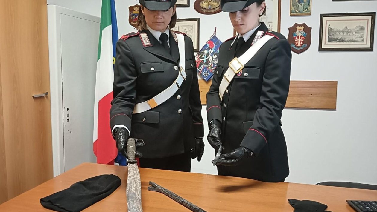 CAMPO DI MARE (CERVETERI) – I Carabinieri della Stazione di Campo di Mare hanno denunciato a piede libero un uomo di 50 anni per porto abusivo di armi e oggetti atti ad offendere. L’uomo, notato dai militari mentre si lungo viale Fregene a bordo di un furgone, è stato fermato per un controllo. Durante la perquisizione personale e veicolare i Carabinieri hanno trovato all’interno del mezzo un coltello da cucina, un machete lungo circa 40 centimetri e un piede di porco della lunghezza di 50 centimetri.