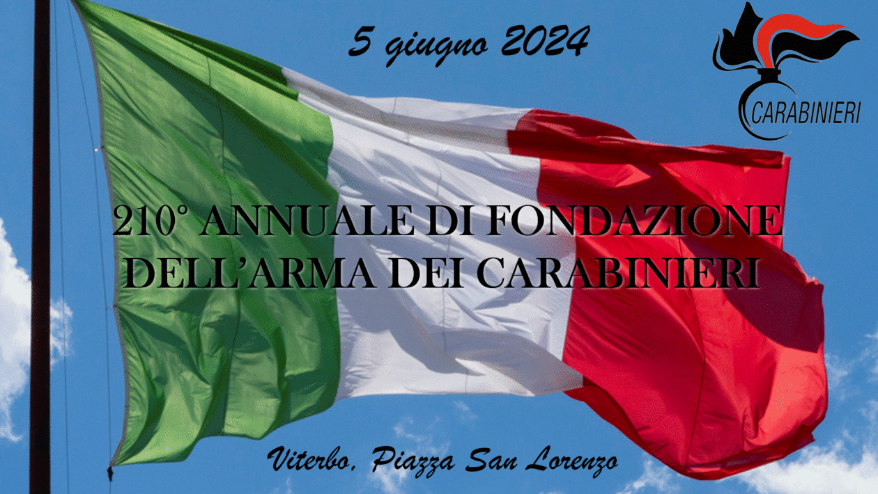 VITERBO – Nella giornata del 5 giugno 2024 si terrà la celebrazione del 210° annuale di fondazione dell’Arma dei Carabinieri. Alle ore 09.30, si terrà …