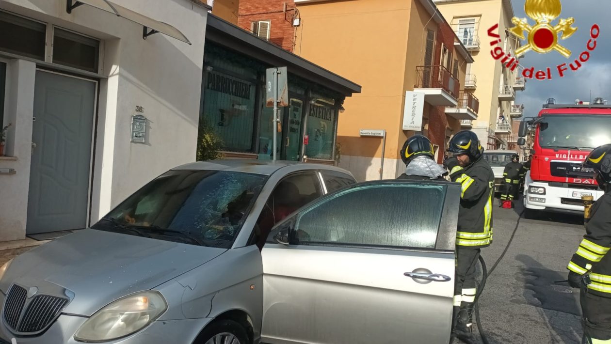 CIVITAVECCHIA – Erano le 17.30 quando una vettura è stata avvolta dalle fiamme in viale Lazio nei pressi del parcheggio dello Stadio del Nuoto.