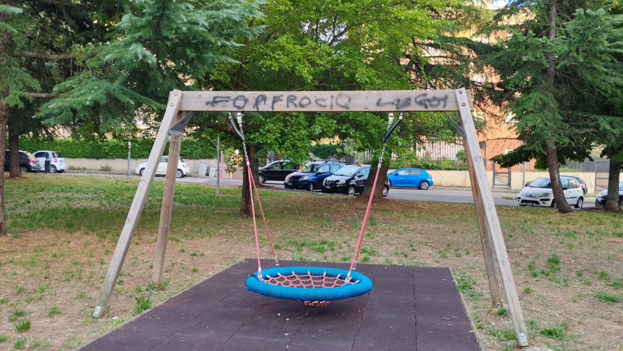 Nuove scritte oscene, stavolta omofobe, “arricchiscono” lo spazio che tanto tempo fa era dedicato ai più piccoli VITERBO – “Qui è terra di nessuno, l’amministrazione …
