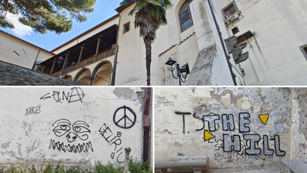 Il degrado regna sovrano anche dentro il cortile di Palazzo dei Priori, luogo d’eccellenza che dovrebbe invece conquistare i turisti