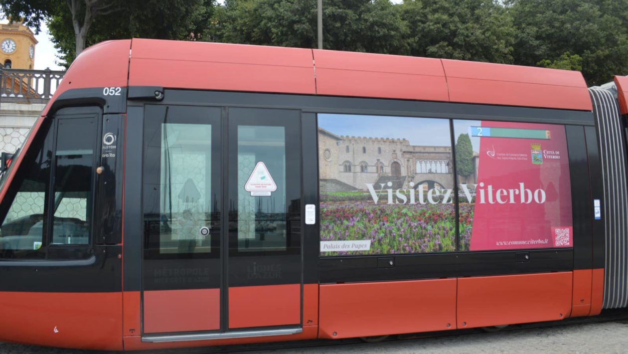 Sui tram della riviera francese viene pubblicizzata la Città dei Papi come meta turistica, ma molti cittadini non hanno gradito VITERBO – Immagini pubblicitarie della …