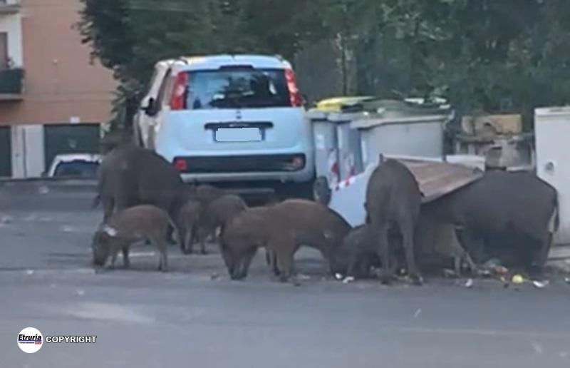 VITERBO – Antipasto, primo, secondo e contorno per la nostra famigliola di cinghiali che in questi giorni sembra aver deciso di soffermarsi in via Monte …