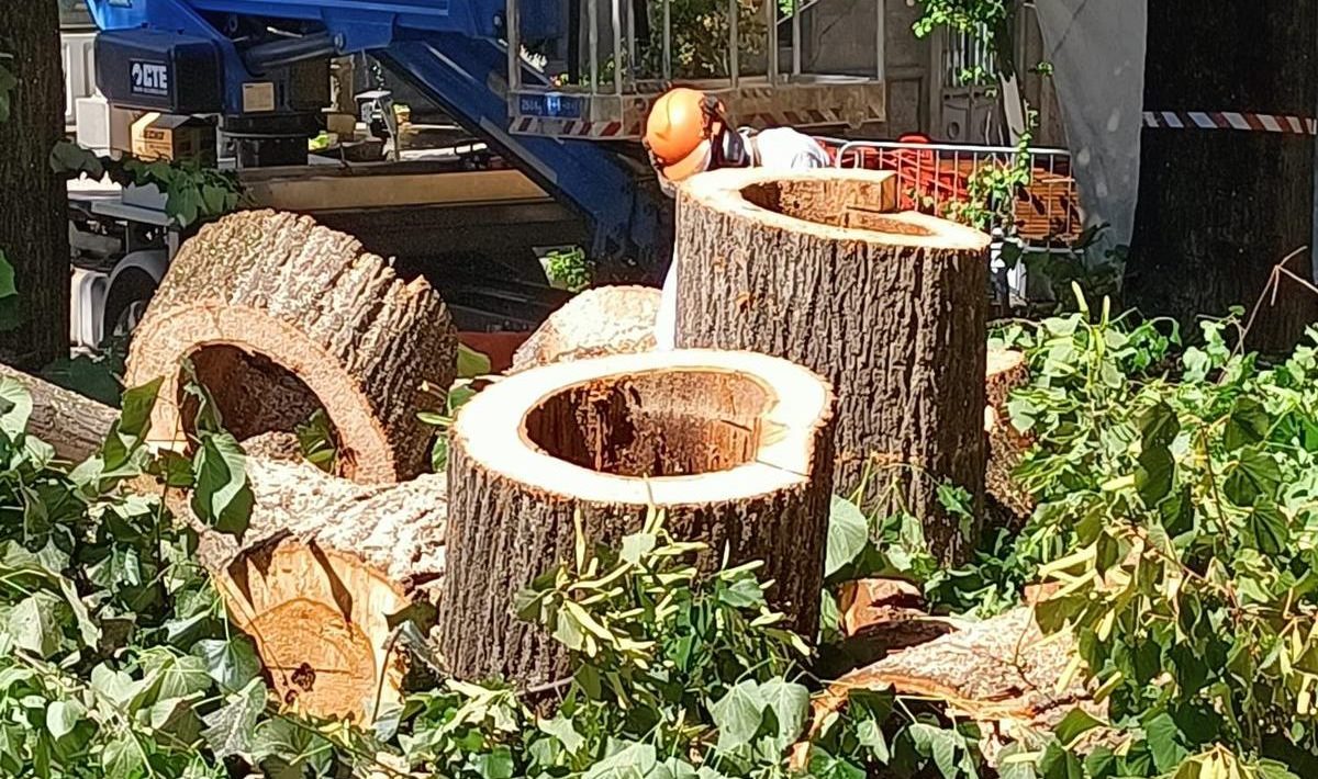 I due grandi alberi erano rimasti completamente cavi e rischiavano di crollare da un momento all’altro su tavoli e passanti VITERBO – Intervento urgente questa …