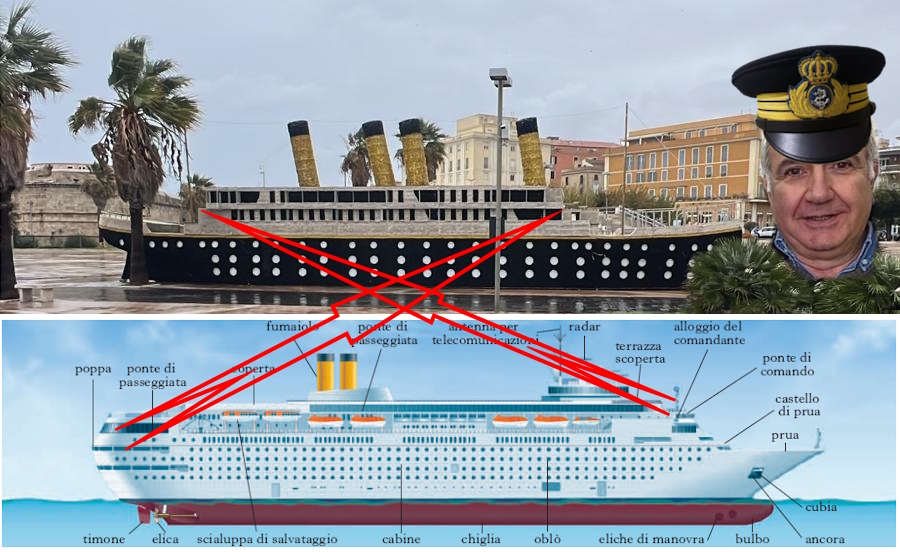 Ponte di comando installato a poppa e ponte di passeggiata posizionato a prua. Segno di sventura per una città di mare CIVITAVECCHIA – Doveva illuminare …