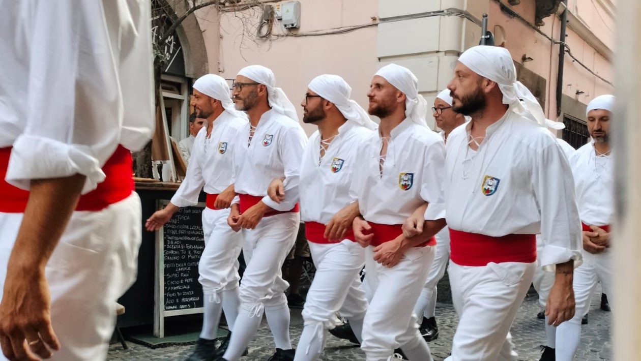VITERBO – Trasporto della Macchina di Santa Rosa, formazione pronta per i Facchini che la sera del 3 settembre 2024 porteranno sulle loro spalle Dies …