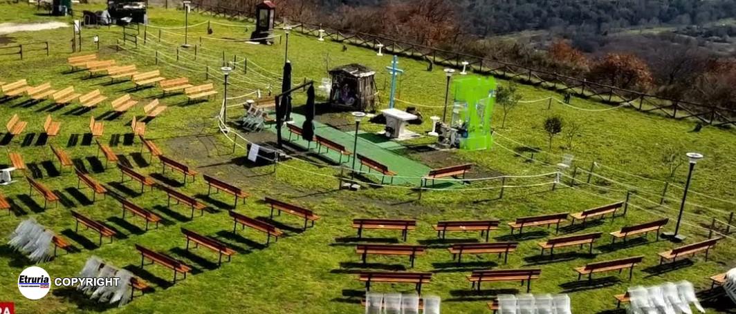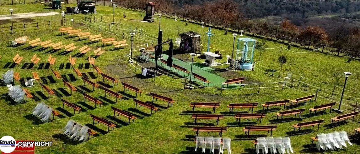 Nuovo look per Campo delle Rose, la veggente si è data alle spese piantumando 30 olivi posti a forma di croce, sedie in plexiglass e …