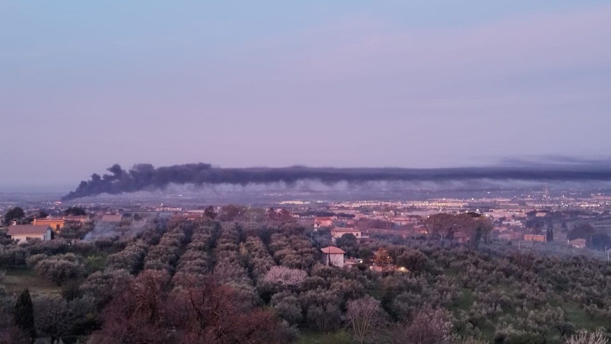ARDEA – Un vasto incendio di preoccupanti dimensioni è in corso, da stamattina all’alba, ad Ardea, in una discarica abusiva di pneumatici.