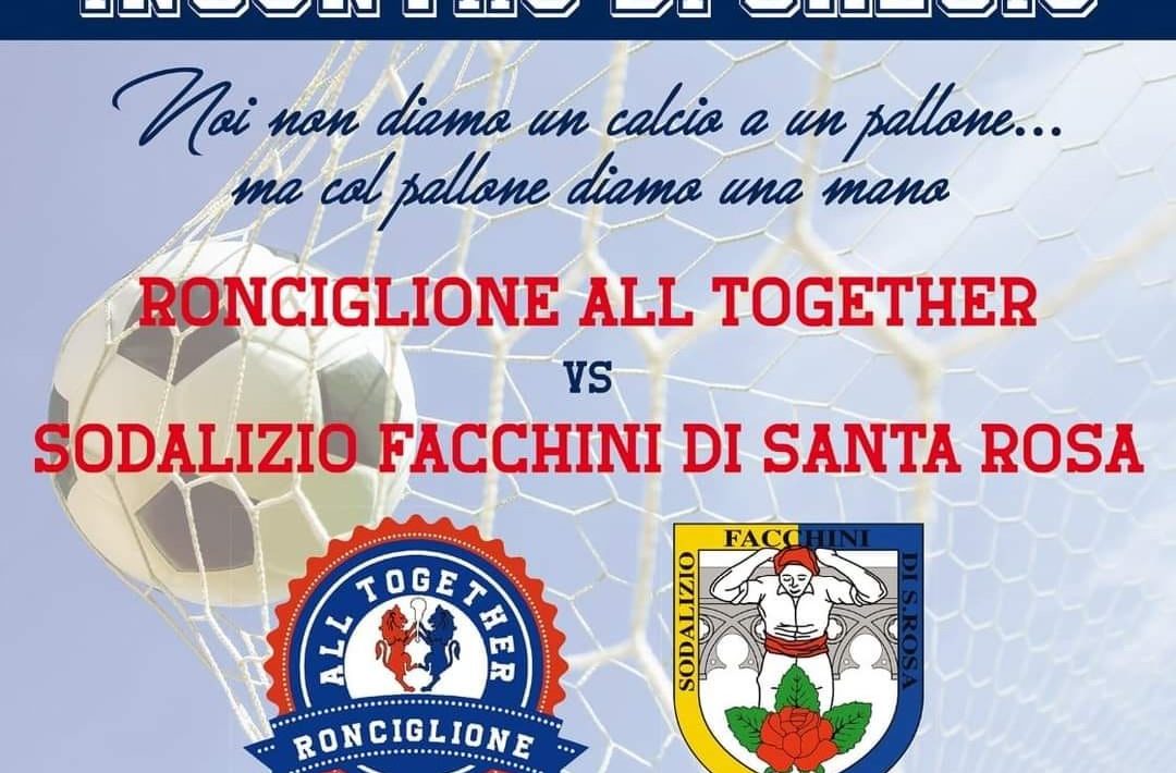 Sabato l’amichevole di calcio a Ronciglione contro gli All Together RONCIGLIONE – I facchini del Sodalizio scenderanno sul campo, di calcio, per aiutare la piccola …