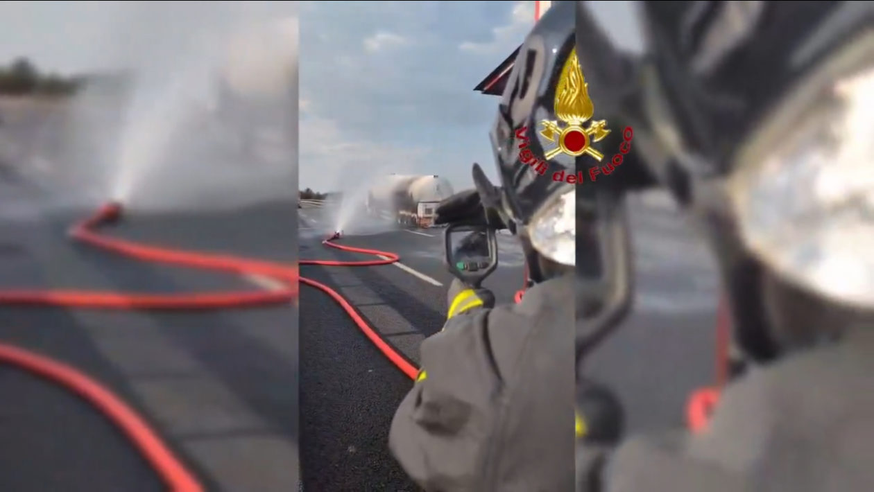 ORTE (VT) – L’autostrada A1, in prossimità di Orte è chiusa in entrambi i sensi di marcia per l’incendio scoppiato su una cisterna di Gpl.